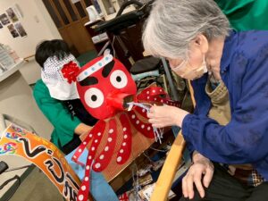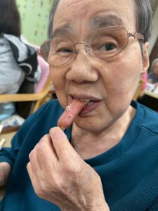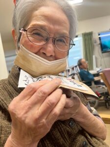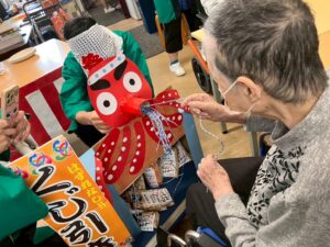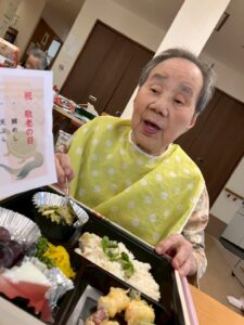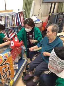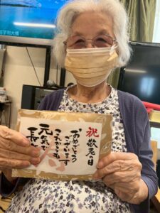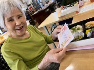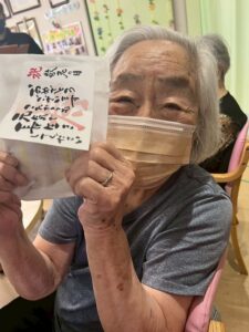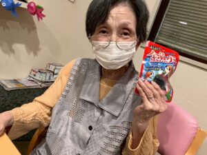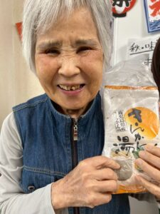 敬老のプレゼントには夏祭りに用意していたくじ引きを使いプレゼント!