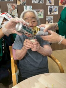 ビールお酌をし皆様の健康と長寿をお祈り致しまして「乾杯!」