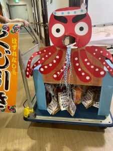 タコの口から紐を引きプレゼントを引いて頂きます!