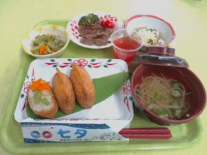 いなり寿司🦊 ゴーヤの酢の物 ほし⭐⭐のハンバーグ