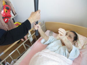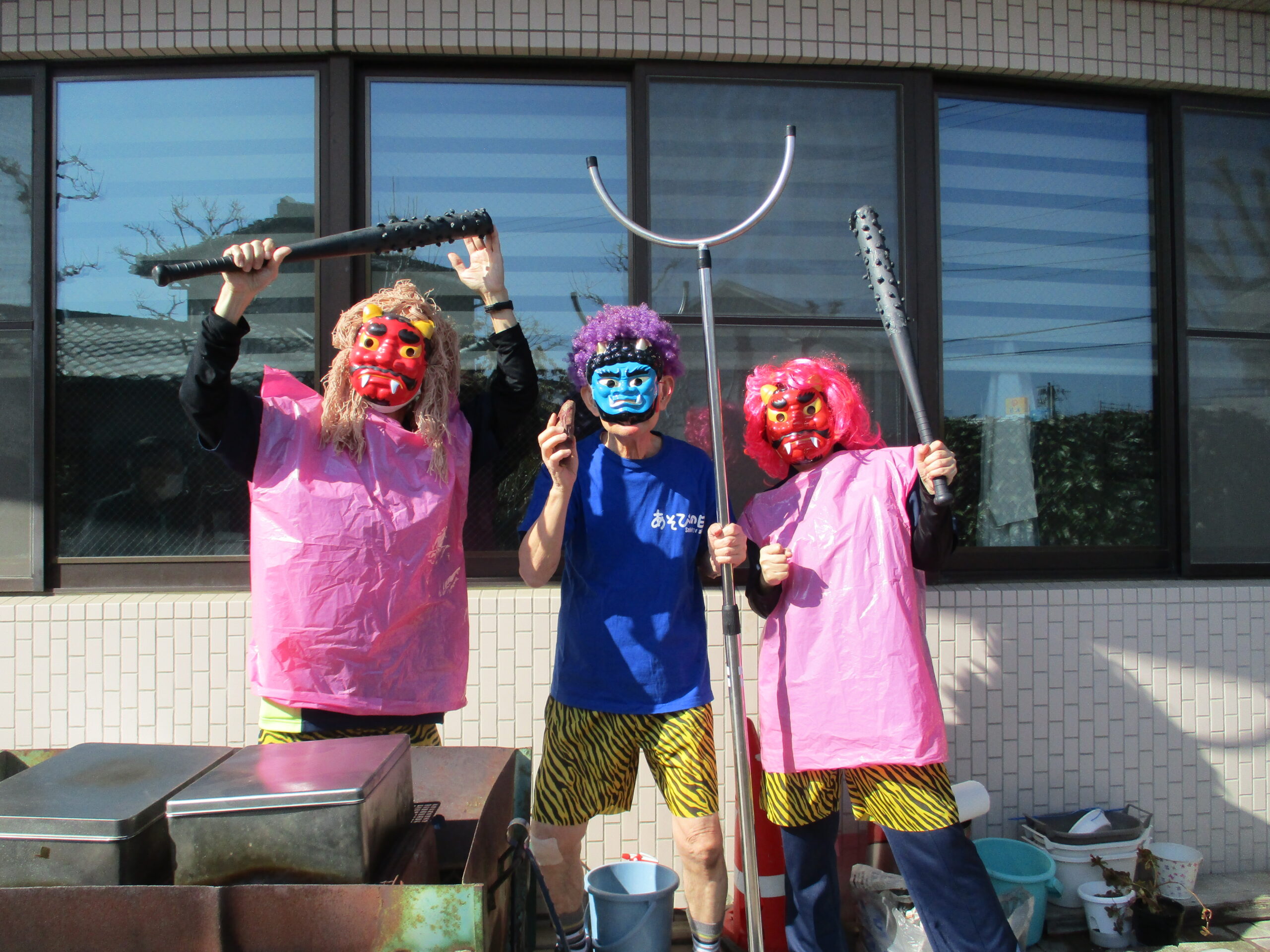 鬼に向かって紅白の豆(特製豆)まきを行いました😁