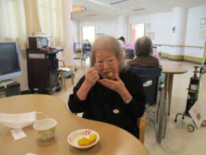 節分の後は、おやつの時間。明星苑恒例の🍠焼き芋🍠を提供しました。