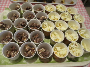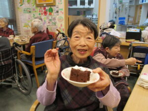ブログ🍫バレンタインチョコ祭り🍫2026.02.28 明星苑コスモス2月13日金曜日、一足先に、『🍫バレンタインチョコ祭り🍫』を開催しました。厨房からのバレンタインチョコケーキ🍰に加えて、4種のチョコ(ホワイト、ミルク、いちご、抹茶)をコーティングした、ポップコーン🍿とババロア🍮を準備。 嚥下機能低下でポップコーンが食べられない方には、カステラにエプリッチ(栄養機能食品)をしみ込ませた『しっとりケーキ』を提供しました😊 < 前へ ブログ一覧